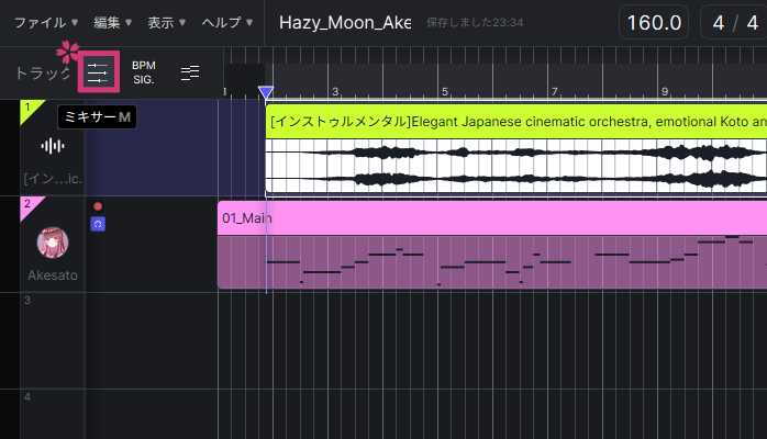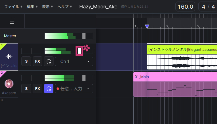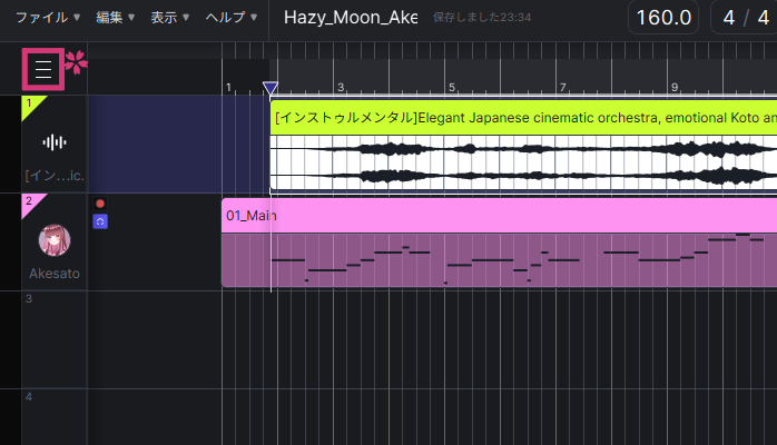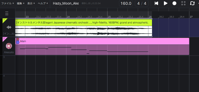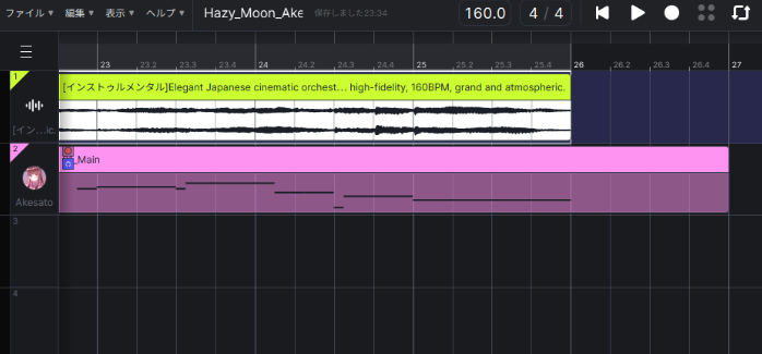 - 今回は、AIボーカルの利用手順で作成した童謡「朧月夜」に、ACE Studioのレイヤー追加機能で伴奏を付けてみます。