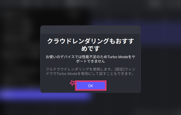 ※ハードウェア要件を満たしていない場合は、レスポンスが遅くなり音質も劣化するだけなので、従来のクラウドレンダリングを利用しましょう。