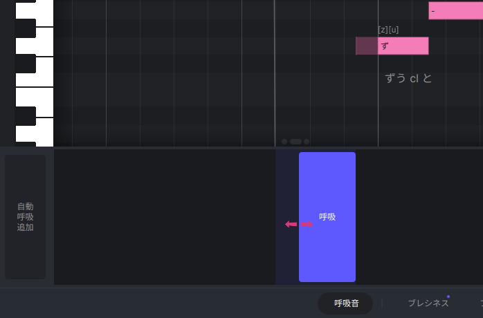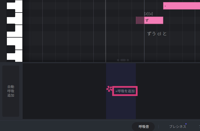 ACE Studioは歌い始めやフレーズとフレーズの間など、ノート間に呼吸するために十分なスペース(無音)がある場合に、呼吸音を追加できるようになっています。